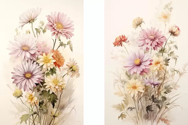 Poster Bukiet kolorowych kwiatów, miękki styl akwareli, na jasnym tle, ilustracja botaniczna Nr d00649