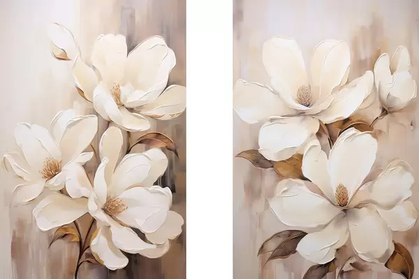 Poster Białe kwiaty magnolii na miękkim, rozmytym tle w odcieniach beżu i brązu, styl malarski Nr d00655