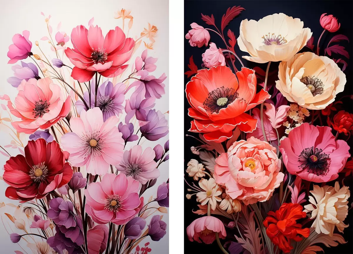 Poster Bukiety maków w pastelowych i bogatych odcieniach Nr d00661