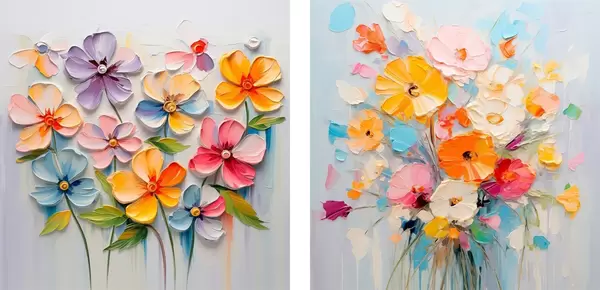 Plakat Abstrakcyjne kompozycje jasnych kwiatów wykonane w technice impasto d00662