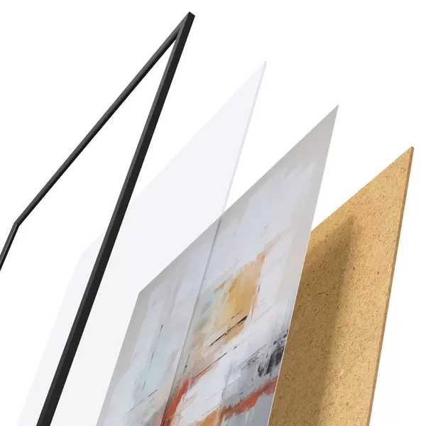 Plakat składa się z ramy, pleksi, wydrukowanego obrazu i podkładu z płyty wiórowej. Plakat można natychmiast zawiesić na ścianie dzięki uchwytom z tyłu.