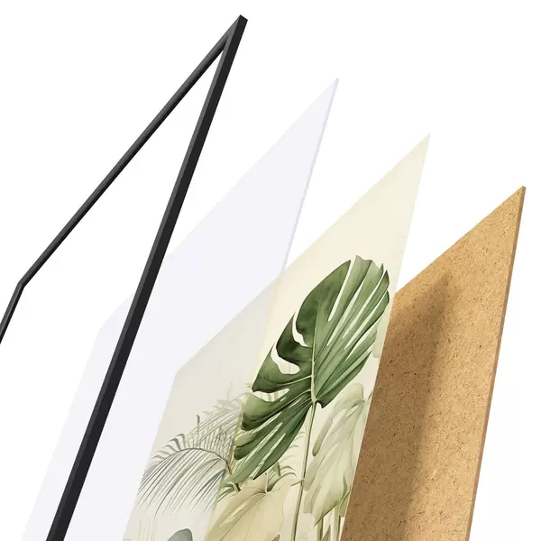 Plakat składa się z ramy, pleksi, wydrukowanego obrazu i podkładu z płyty wiórowej. Plakat można natychmiast zawiesić na ścianie dzięki uchwytom z tyłu.