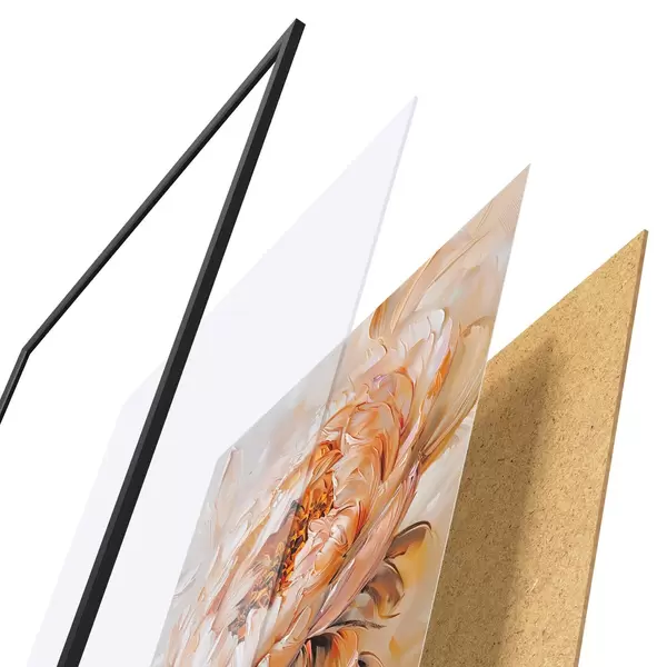 Plakat składa się z ramy, pleksi, wydrukowanego obrazu i podkładu z płyty wiórowej. Plakat można natychmiast zawiesić na ścianie dzięki uchwytom z tyłu.