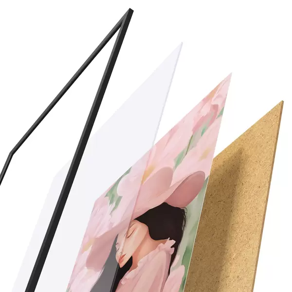 Plakat składa się z ramy, pleksi, wydrukowanego obrazu i podkładu z płyty wiórowej. Plakat można natychmiast zawiesić na ścianie dzięki uchwytom z tyłu.