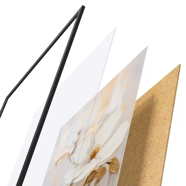 Plakat składa się z ramy, pleksi, wydrukowanego obrazu i podkładu z płyty wiórowej. Plakat można natychmiast zawiesić na ścianie dzięki uchwytom z tyłu.