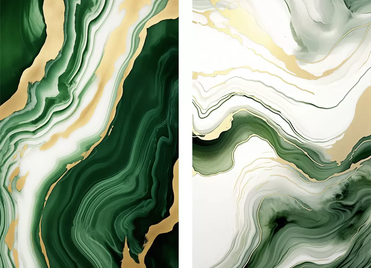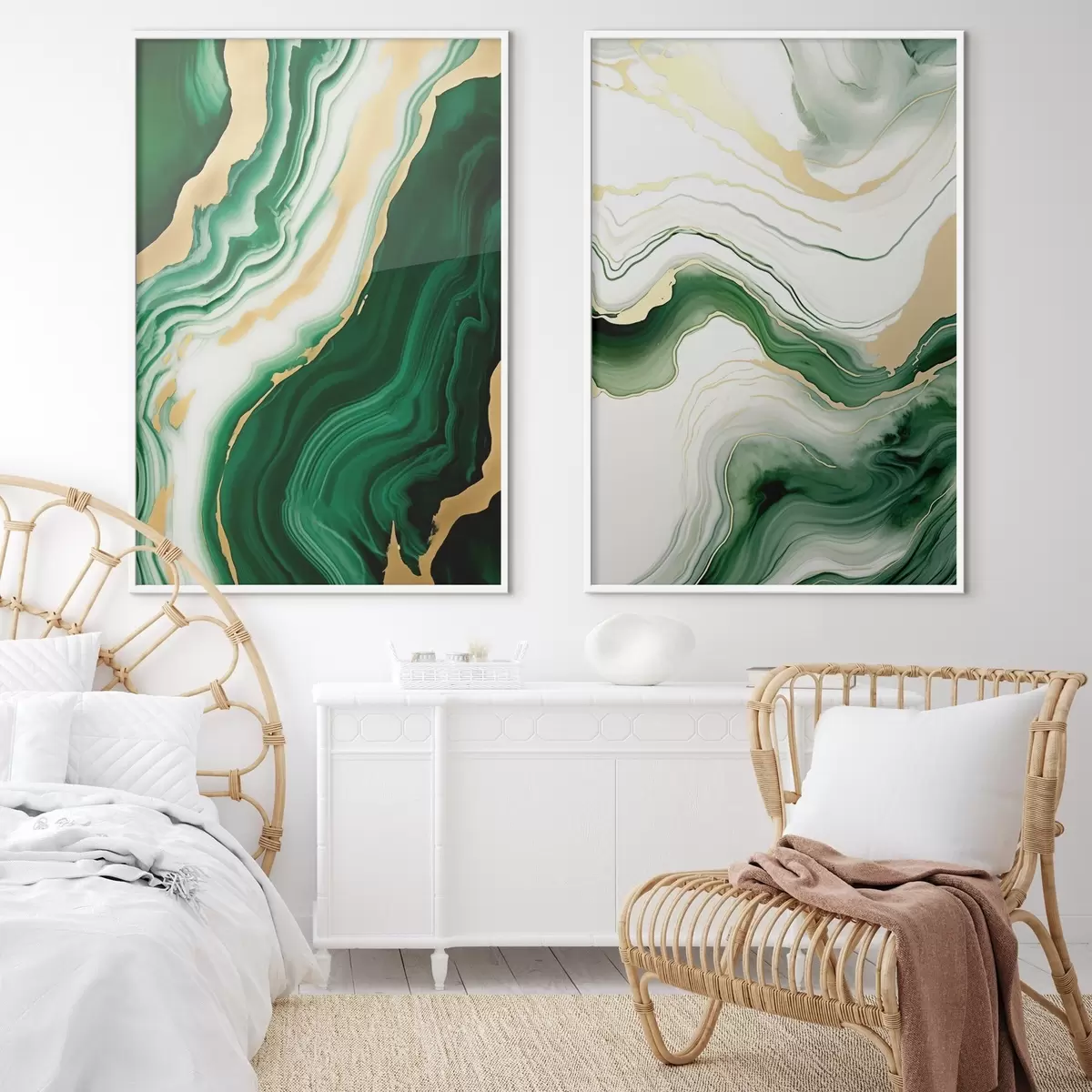 Plakat Tekstury zielonego i białego marmuru z pomarańczowo-żółtymi żyłkami d00688