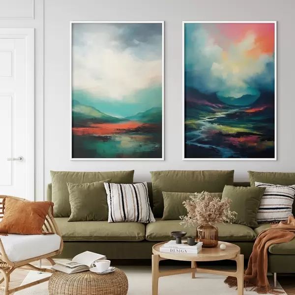 Plakat Abstrakcyjny krajobraz z chmurami w odcieniach turkusu i czerwieni d00691