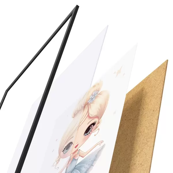 Plakat składa się z ramy, pleksi, wydrukowanego obrazu i podkładu z płyty wiórowej. Plakat można natychmiast zawiesić na ścianie dzięki uchwytom z tyłu.