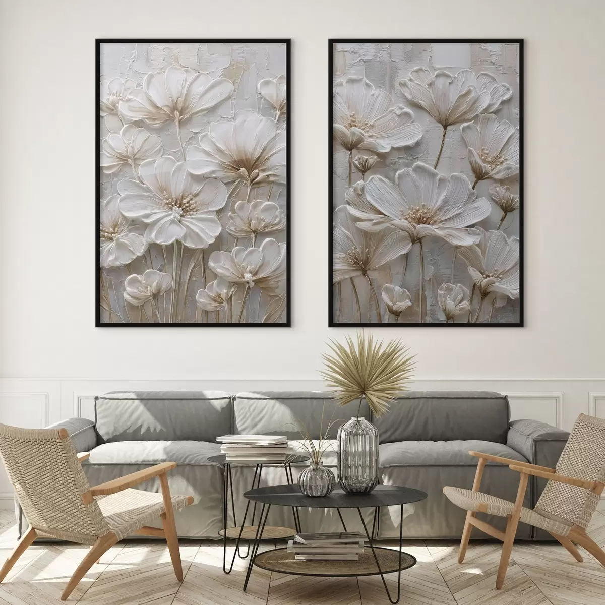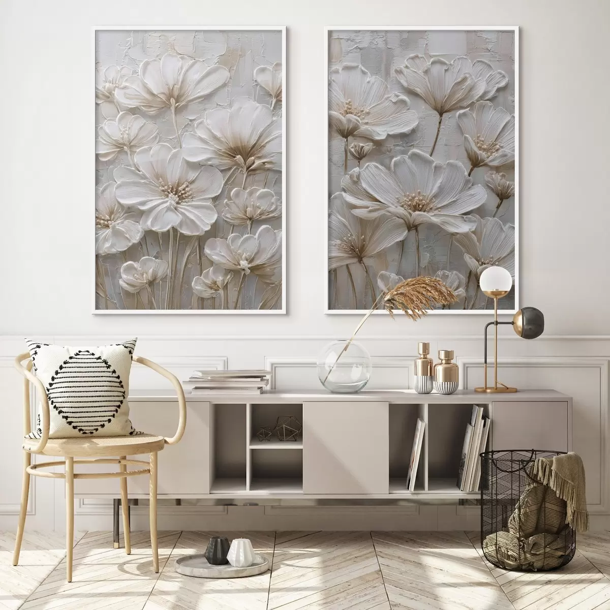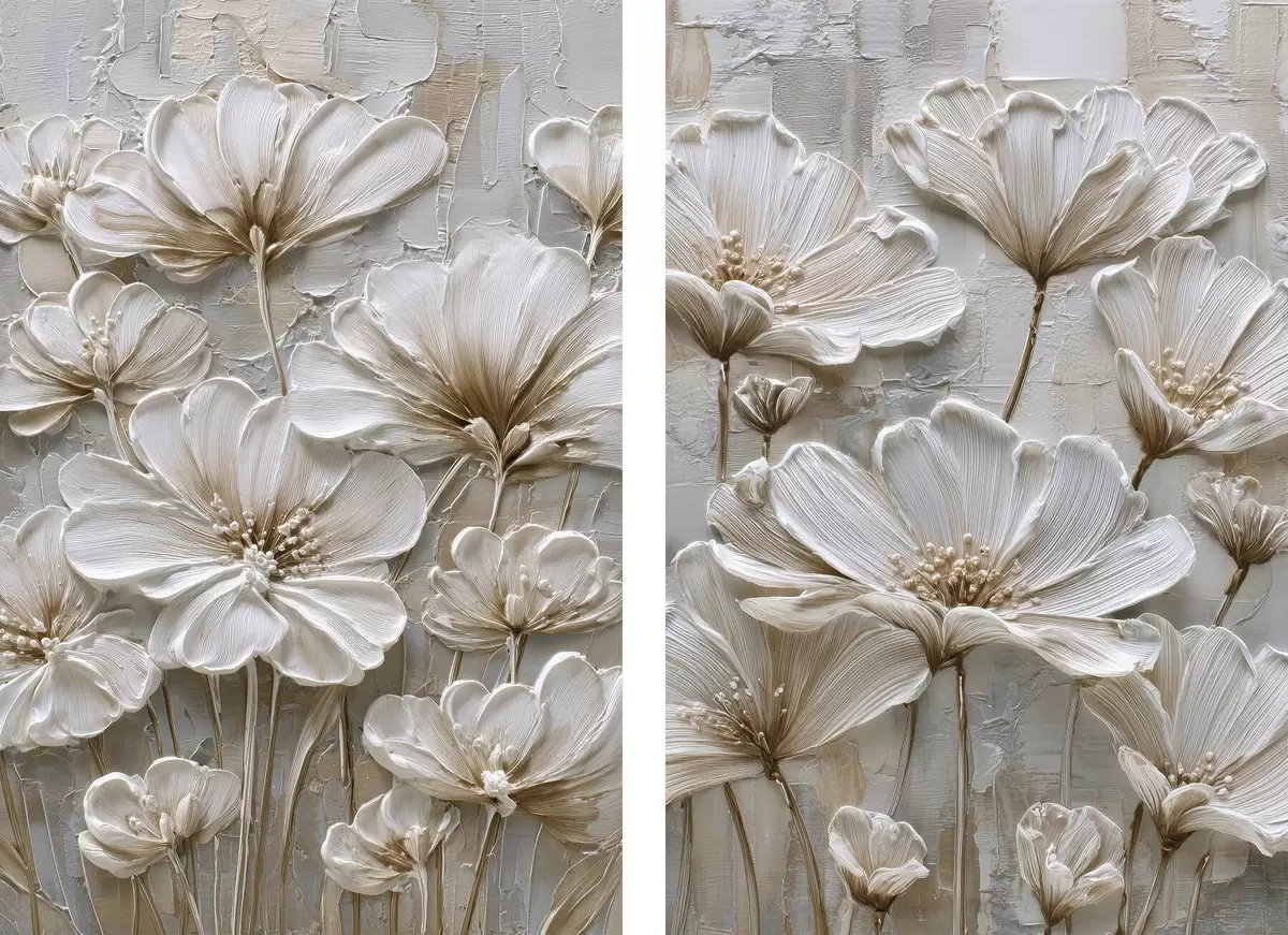 Plakat kremowe kwiaty w stylu imitującym impasto d00701