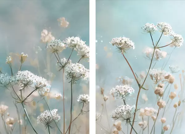 Plakat Kwiaty Queen Anne's Lace w stylu akwareli na niebieskim tle d00705