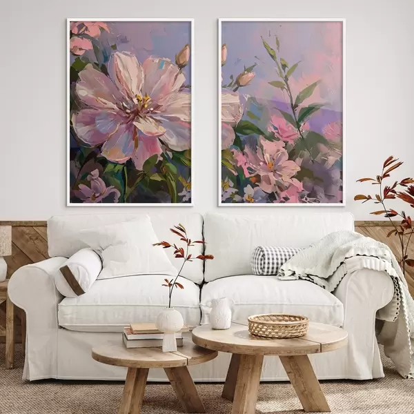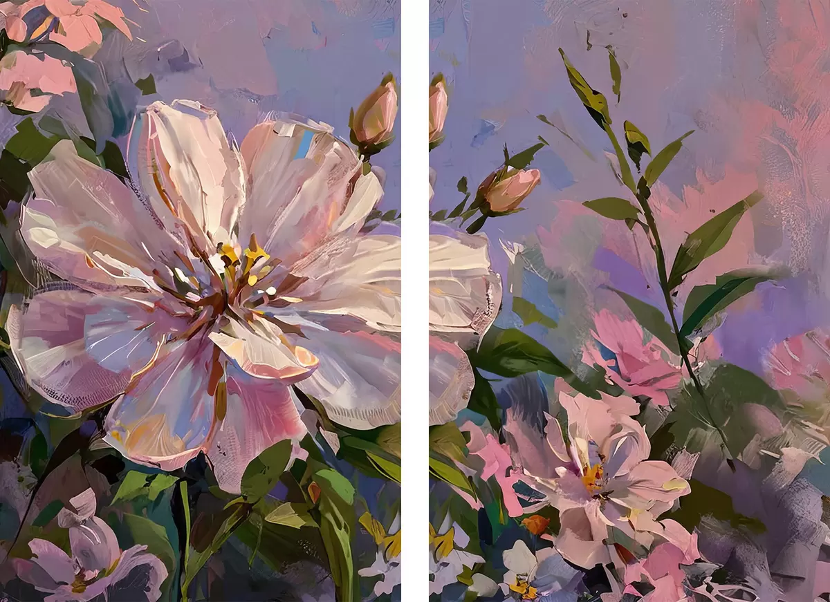 Plakat różowe kwiaty w stylu malarstwa olejnego d00706