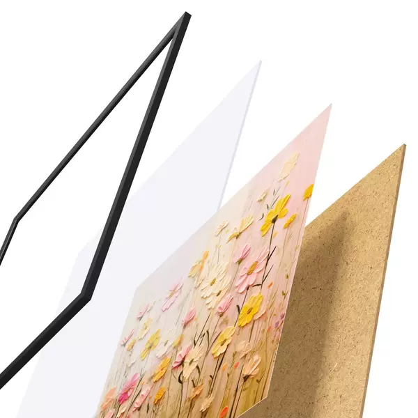 Plakat składa się z ramy, pleksi, wydrukowanego obrazu i podkładu z płyty wiórowej. Plakat można natychmiast zawiesić na ścianie dzięki uchwytom z tyłu.