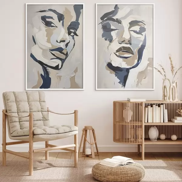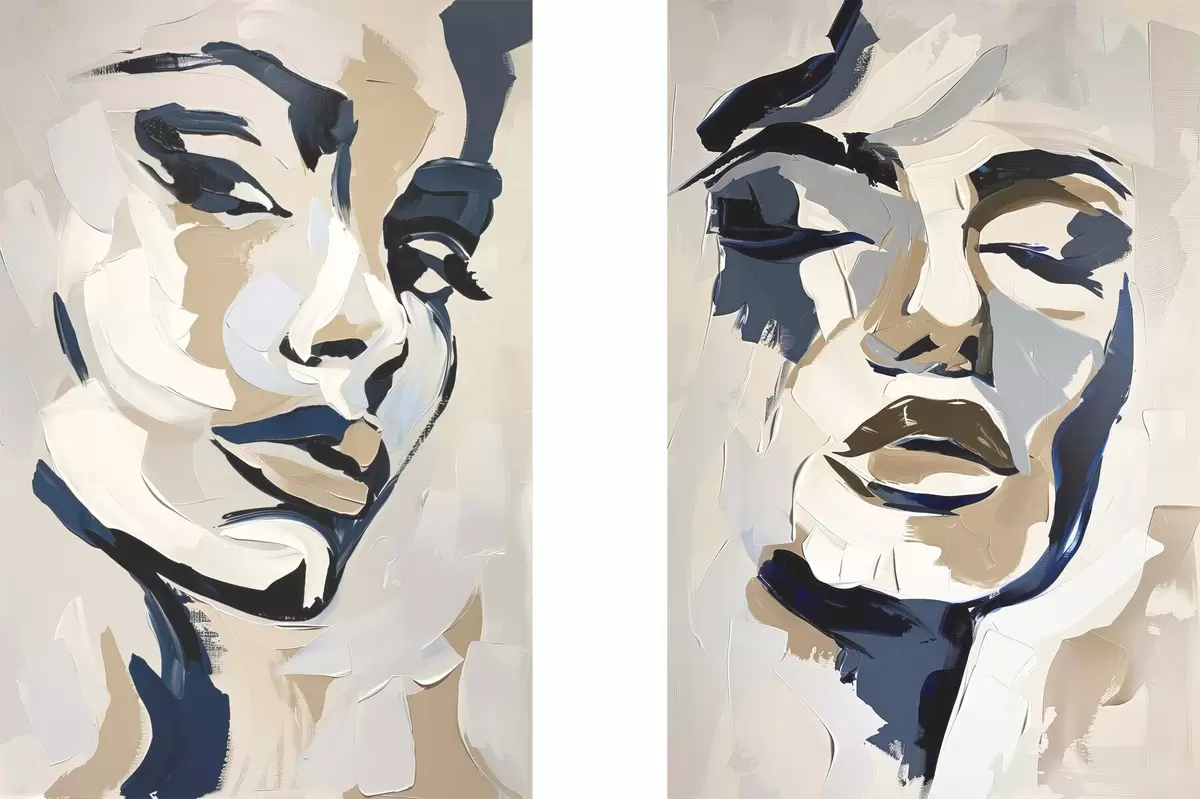 Plakat Abstrakcyjne twarze kobiet z imitacją pociągnięć pędzla d00713