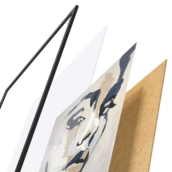 Plakat składa się z ramy, pleksi, wydrukowanego obrazu i podkładu z płyty wiórowej. Plakat można natychmiast zawiesić na ścianie dzięki uchwytom z tyłu.