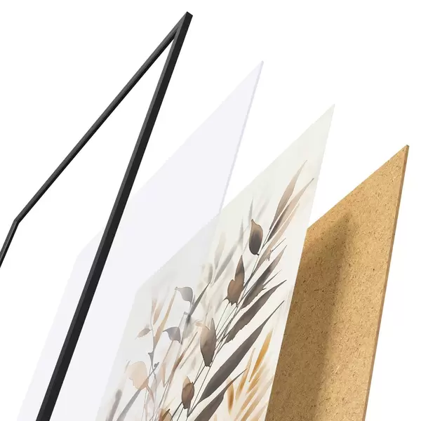 Plakat składa się z ramy, pleksi, wydrukowanego obrazu i podkładu z płyty wiórowej. Plakat można natychmiast zawiesić na ścianie dzięki uchwytom z tyłu.