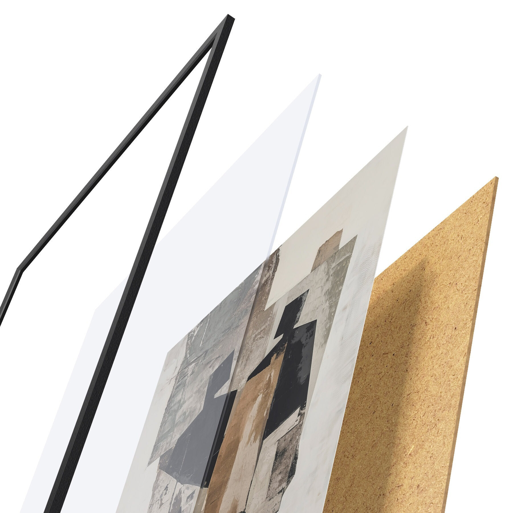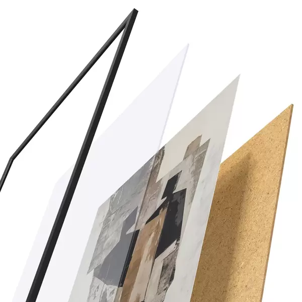 Plakat składa się z ramy, pleksi, wydrukowanego obrazu i podkładu z płyty wiórowej. Plakat można natychmiast zawiesić na ścianie dzięki uchwytom z tyłu.
