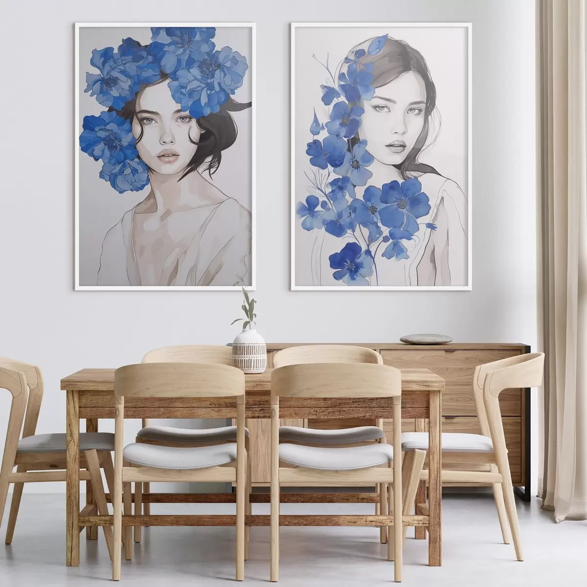 Poster Portret dziewczyny z niebieskimi kwiatami Nr d00721