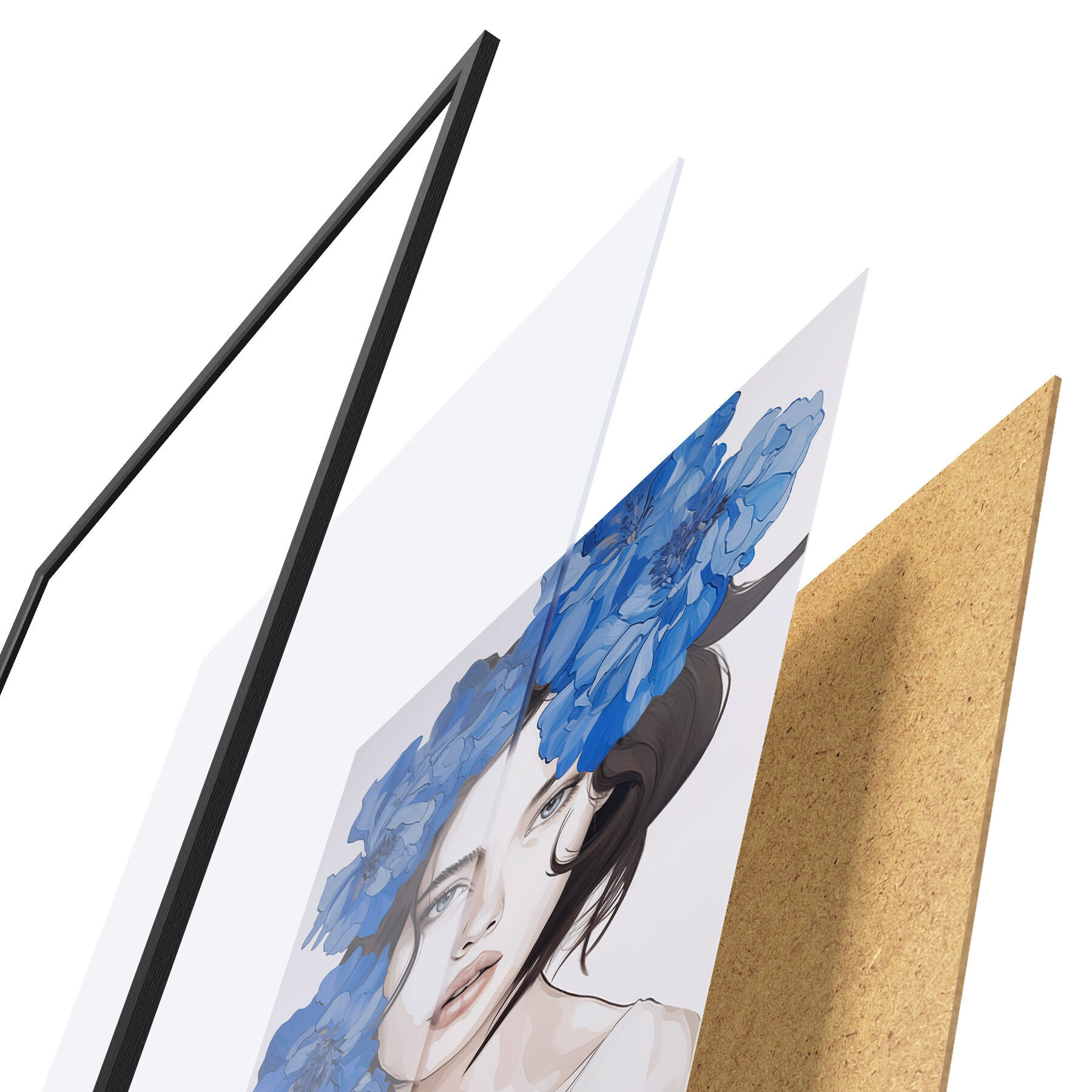 Plakat składa się z ramy, pleksi, wydrukowanego obrazu i podkładu z płyty wiórowej. Plakat można natychmiast zawiesić na ścianie dzięki uchwytom z tyłu.