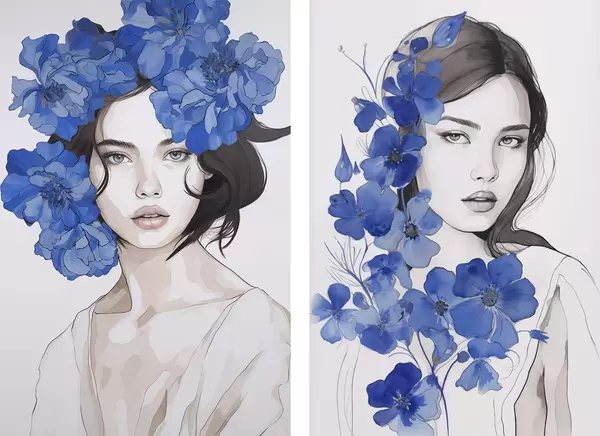 Poster Portret dziewczyny z niebieskimi kwiatami Nr d00721