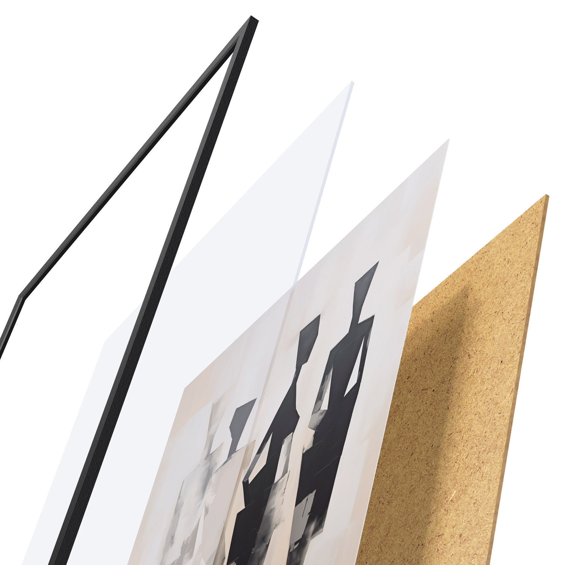 Plakat składa się z ramy, pleksi, wydrukowanego obrazu i podkładu z płyty wiórowej. Plakat można natychmiast zawiesić na ścianie dzięki uchwytom z tyłu.