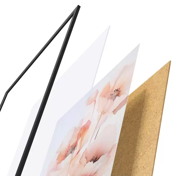 Plakat składa się z ramy, pleksi, wydrukowanego obrazu i podkładu z płyty wiórowej. Plakat można natychmiast zawiesić na ścianie dzięki uchwytom z tyłu.
