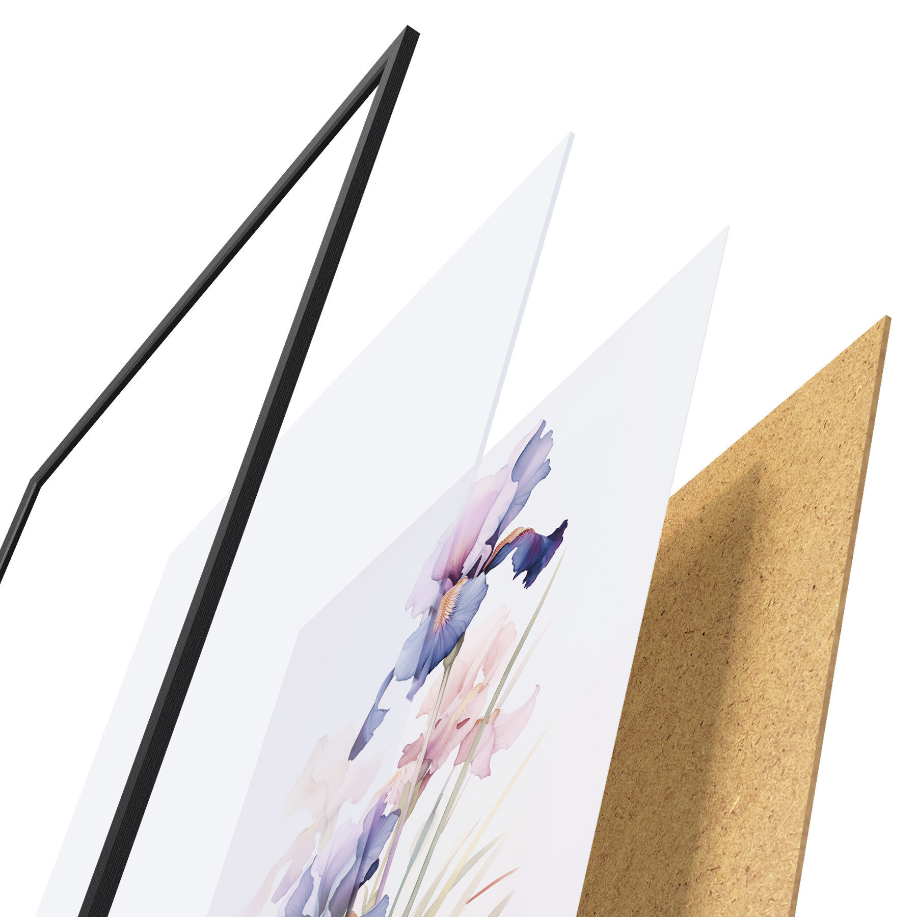 Plakat składa się z ramy, pleksi, wydrukowanego obrazu i podkładu z płyty wiórowej. Plakat można natychmiast zawiesić na ścianie dzięki uchwytom z tyłu.