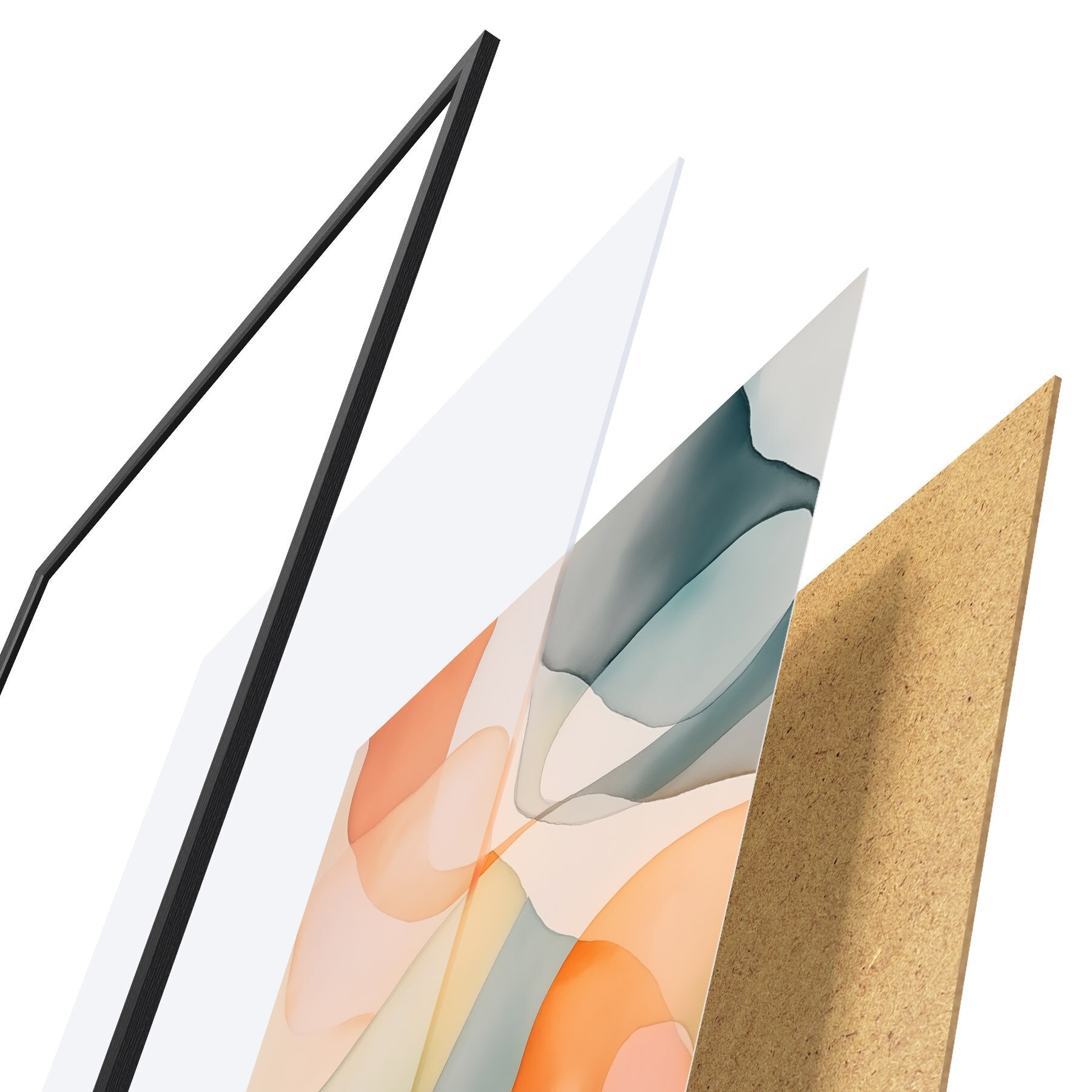 Plakat składa się z ramy, pleksi, wydrukowanego obrazu i podkładu z płyty wiórowej. Plakat można natychmiast zawiesić na ścianie dzięki uchwytom z tyłu.