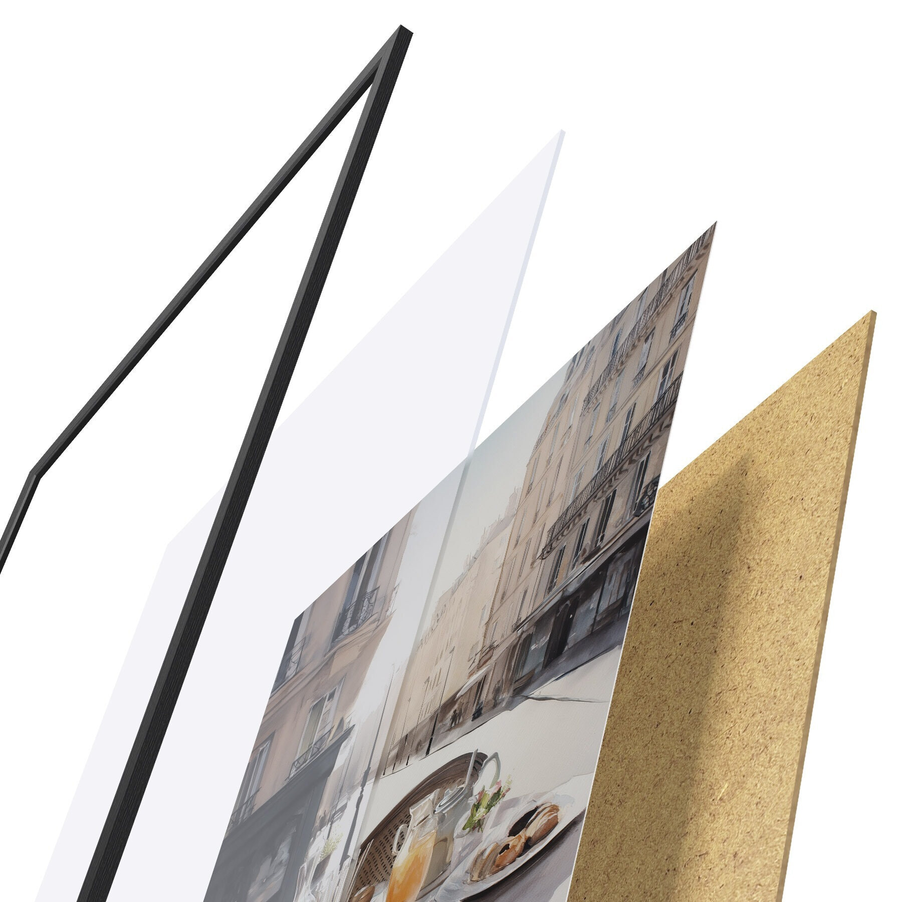 Plakat składa się z ramy, pleksi, wydrukowanego obrazu i podkładu z płyty wiórowej. Plakat można natychmiast zawiesić na ścianie dzięki uchwytom z tyłu.
