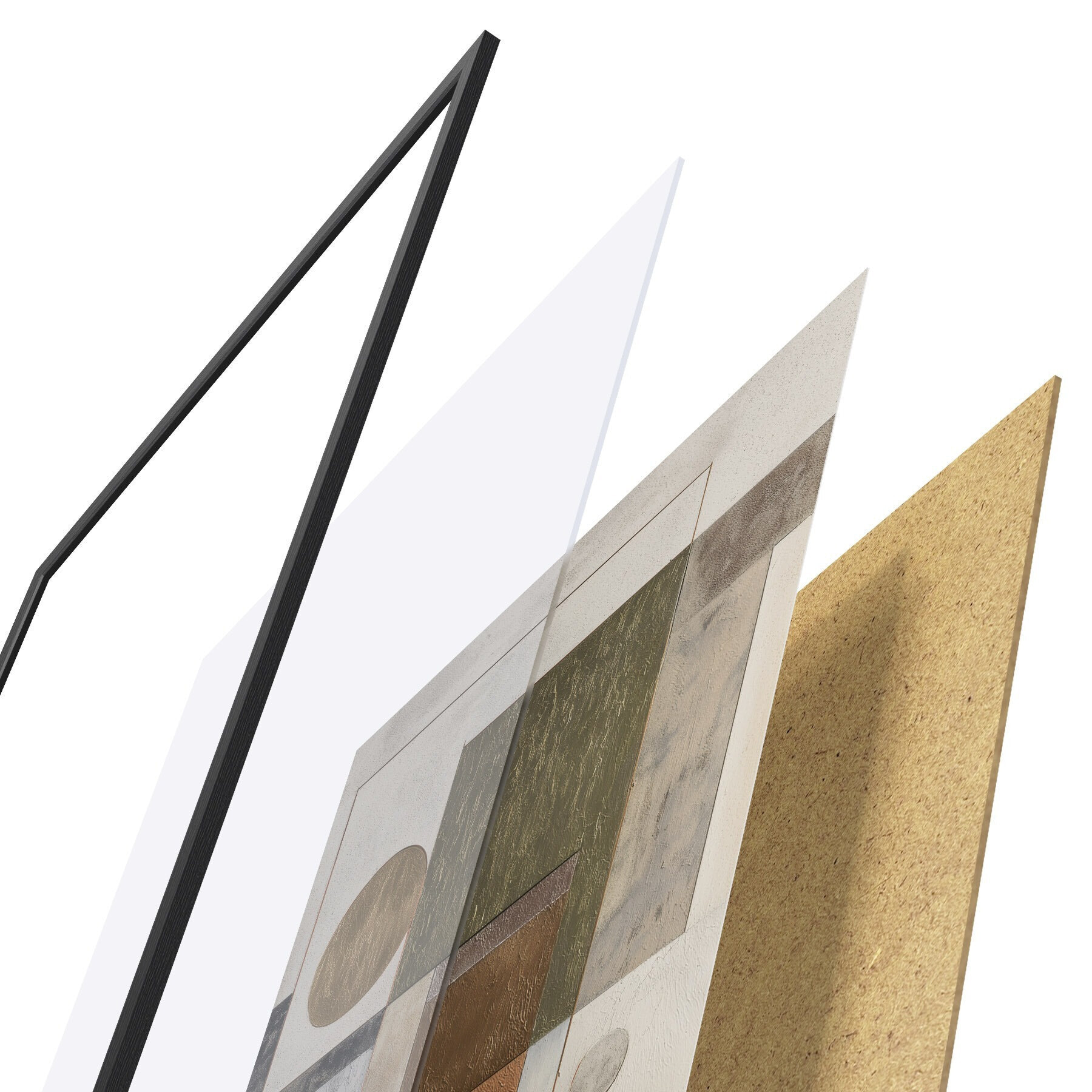 Plakat składa się z ramy, pleksi, wydrukowanego obrazu i podkładu z płyty wiórowej. Plakat można natychmiast zawiesić na ścianie dzięki uchwytom z tyłu.
