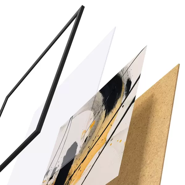 Plakat składa się z ramy, pleksi, wydrukowanego obrazu i podkładu z płyty wiórowej. Plakat można natychmiast zawiesić na ścianie dzięki uchwytom z tyłu.