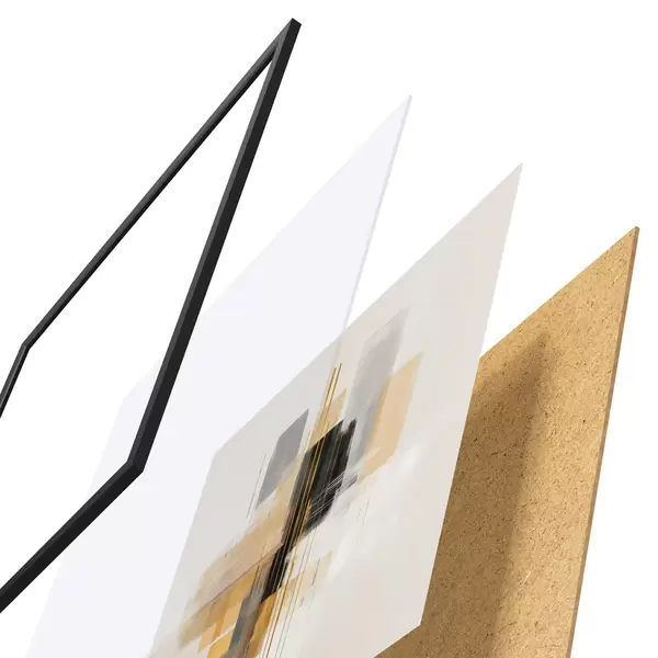 Plakat składa się z ramy, pleksi, wydrukowanego obrazu i podkładu z płyty wiórowej. Plakat można natychmiast zawiesić na ścianie dzięki uchwytom z tyłu.