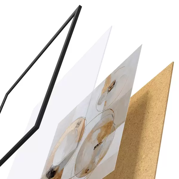 Plakat składa się z ramy, pleksi, wydrukowanego obrazu i podkładu z płyty wiórowej. Plakat można natychmiast zawiesić na ścianie dzięki uchwytom z tyłu.