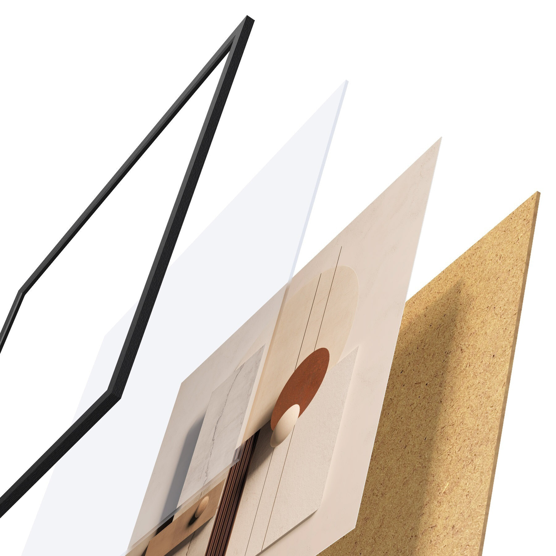 Plakat składa się z ramy, pleksi, wydrukowanego obrazu i podkładu z płyty wiórowej. Plakat można natychmiast zawiesić na ścianie dzięki uchwytom z tyłu.