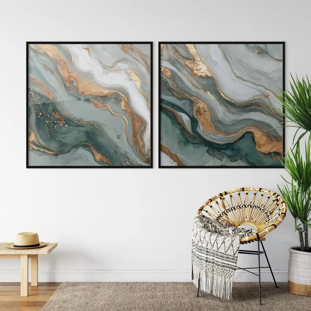 Plakat Marmurowa faktura w odcieniach szarości i turkusu d00744