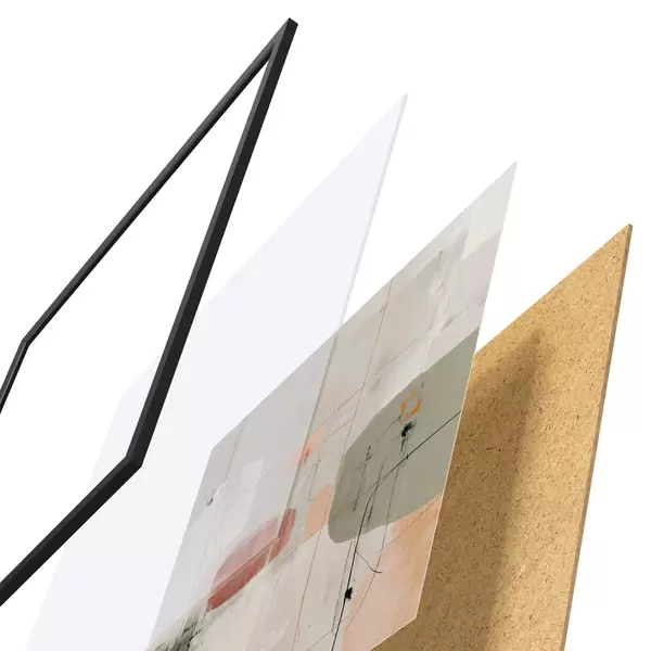 Plakat składa się z ramy, pleksi, wydrukowanego obrazu i podkładu z płyty wiórowej. Plakat można natychmiast zawiesić na ścianie dzięki uchwytom z tyłu.