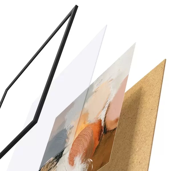 Plakat składa się z ramy, pleksi, wydrukowanego obrazu i podkładu z płyty wiórowej. Plakat można natychmiast zawiesić na ścianie dzięki uchwytom z tyłu.