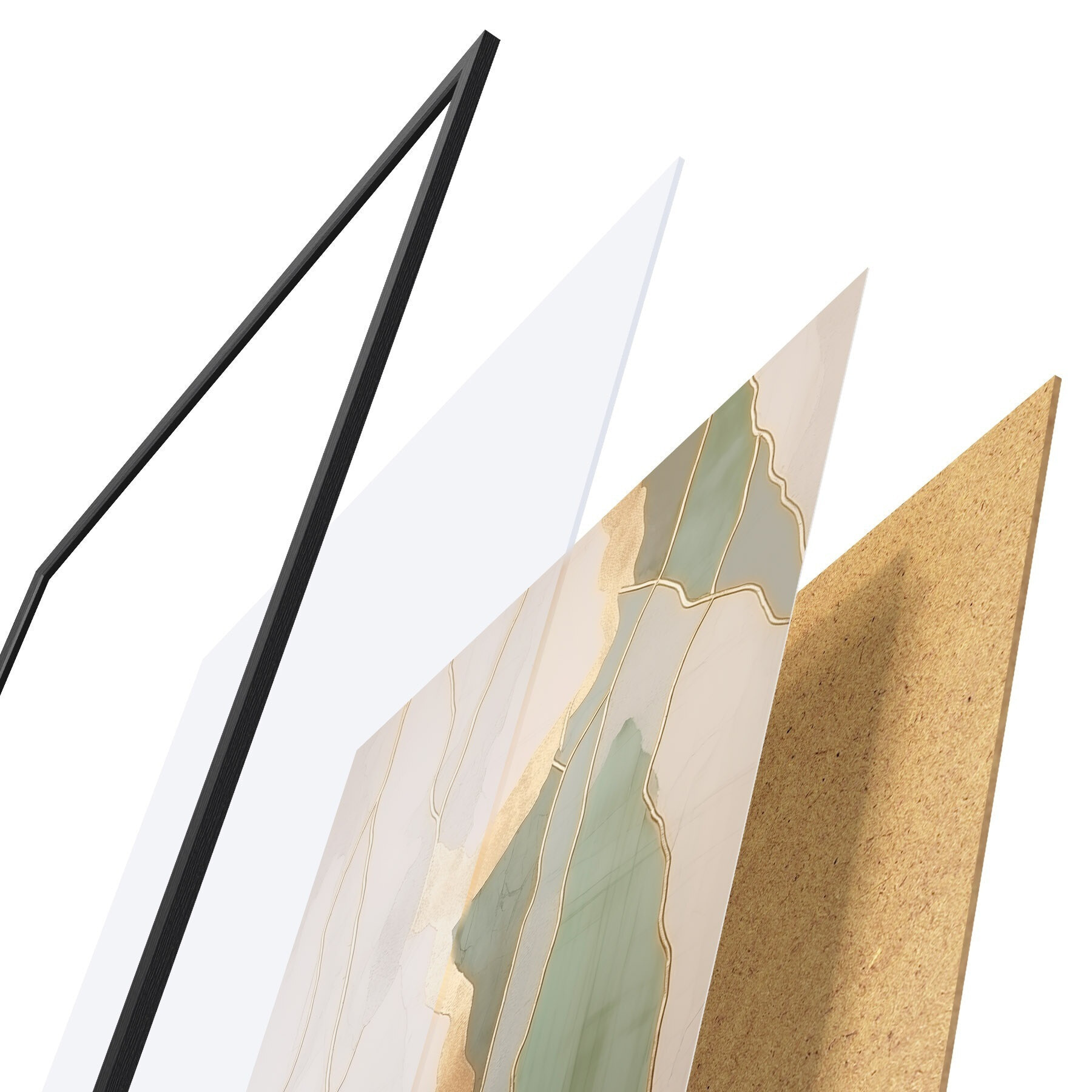 Plakat składa się z ramy, pleksi, wydrukowanego obrazu i podkładu z płyty wiórowej. Plakat można natychmiast zawiesić na ścianie dzięki uchwytom z tyłu.