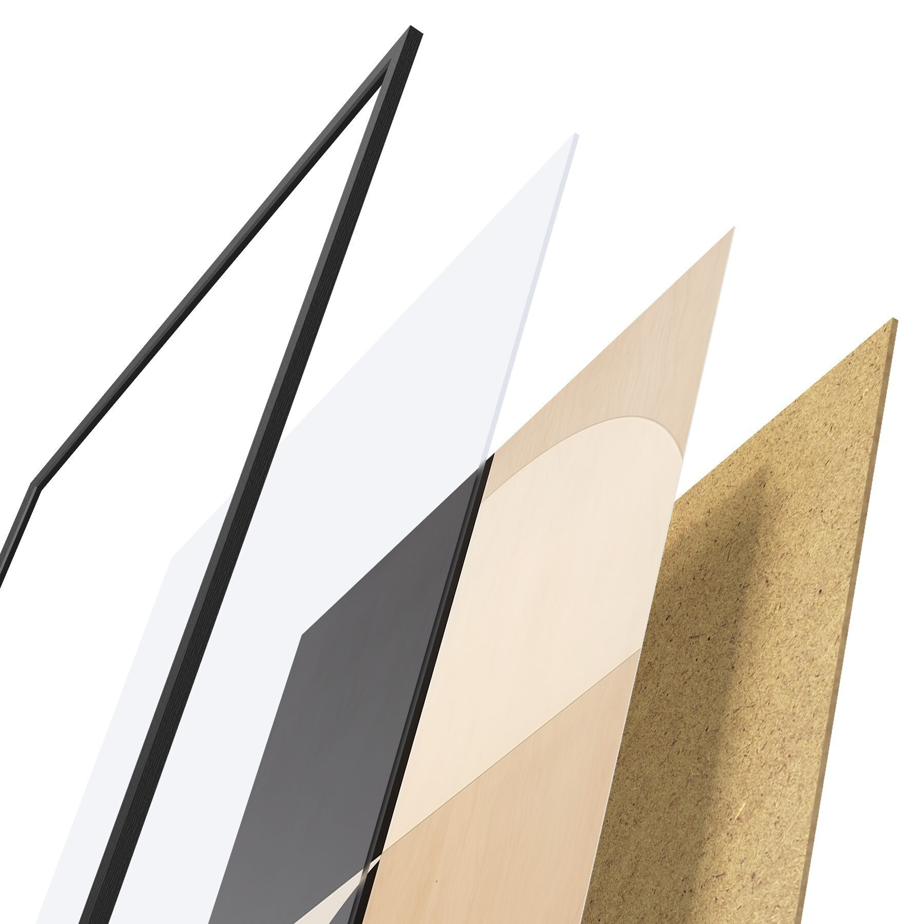 Plakat składa się z ramy, pleksi, wydrukowanego obrazu i podkładu z płyty wiórowej. Plakat można natychmiast zawiesić na ścianie dzięki uchwytom z tyłu.