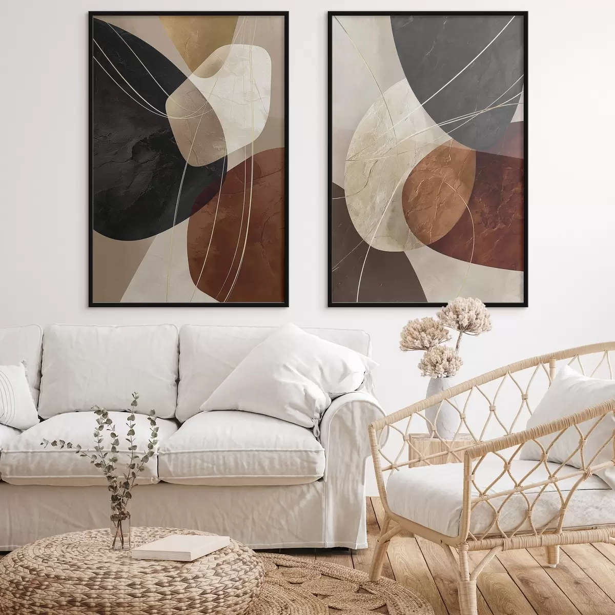 Plakat Geometryczne owale w ciepłej palecie kolorów z żółtymi liniami d00763