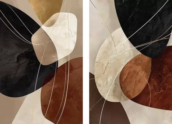 Plakat Geometryczne owale w ciepłej palecie kolorów z żółtymi liniami d00763