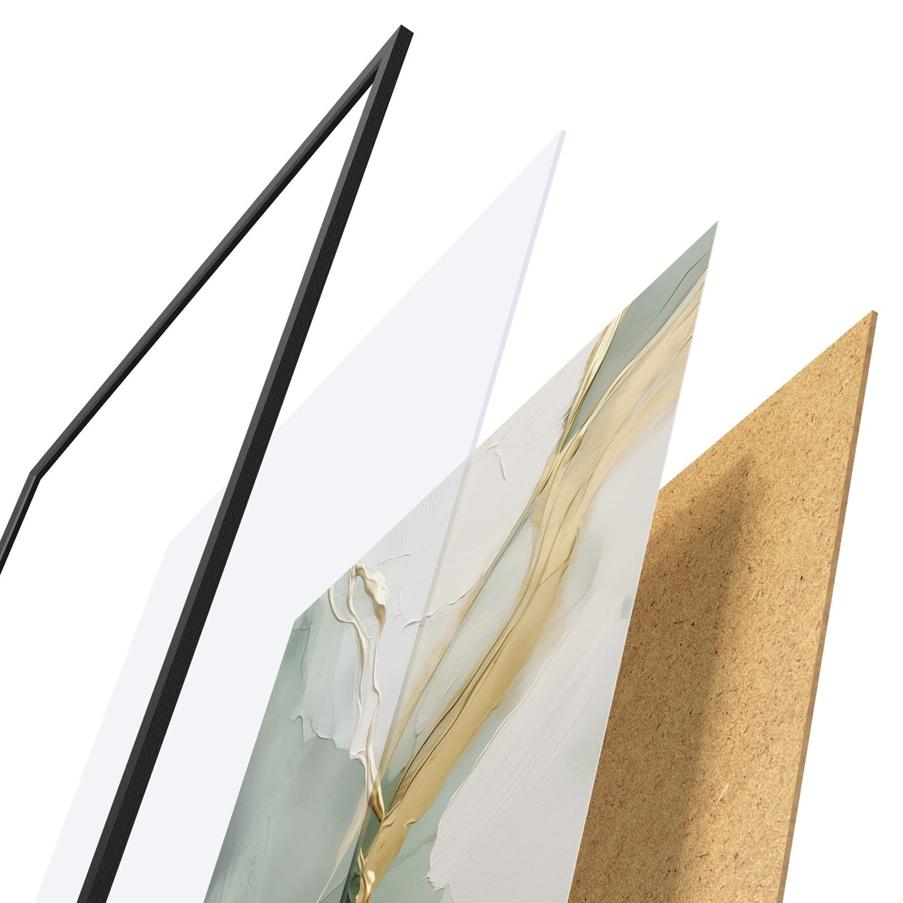 Plakat składa się z ramy, pleksi, wydrukowanego obrazu i podkładu z płyty wiórowej. Plakat można natychmiast zawiesić na ścianie dzięki uchwytom z tyłu.