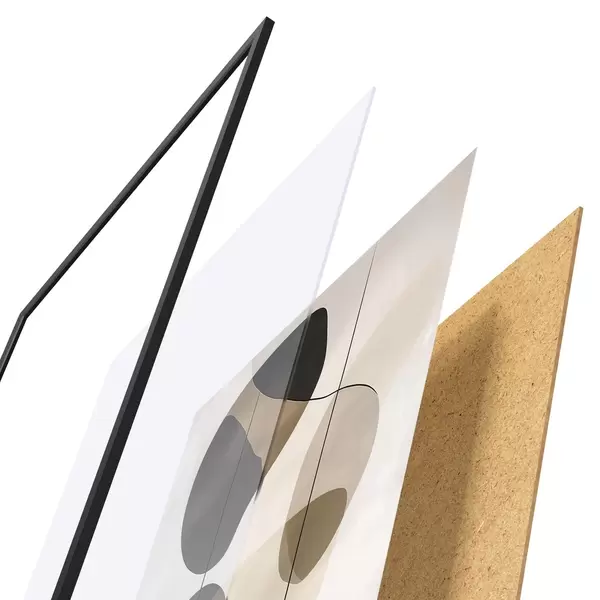 Plakat składa się z ramy, pleksi, wydrukowanego obrazu i podkładu z płyty wiórowej. Plakat można natychmiast zawiesić na ścianie dzięki uchwytom z tyłu.