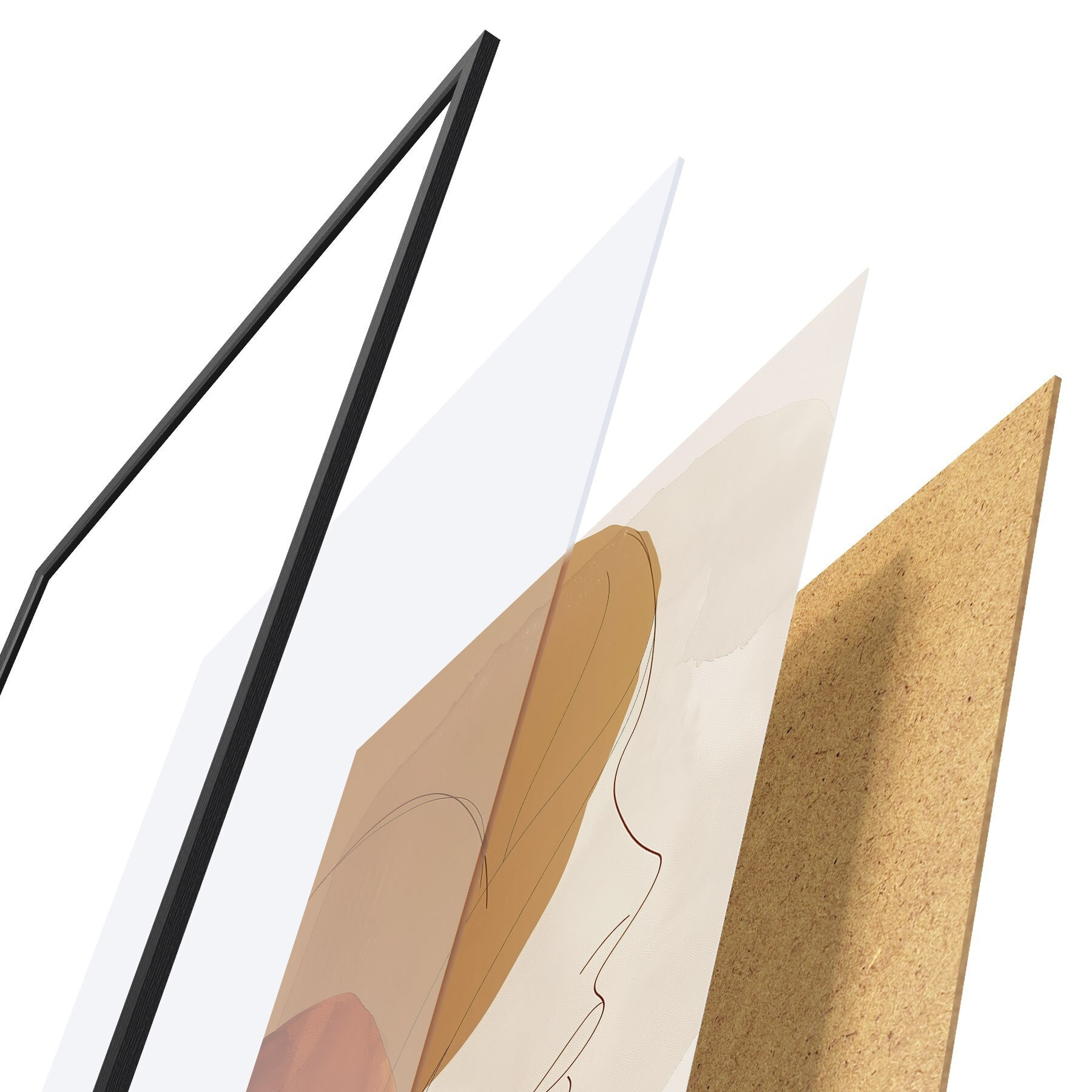 Plakat składa się z ramy, pleksi, wydrukowanego obrazu i podkładu z płyty wiórowej. Plakat można natychmiast zawiesić na ścianie dzięki uchwytom z tyłu.