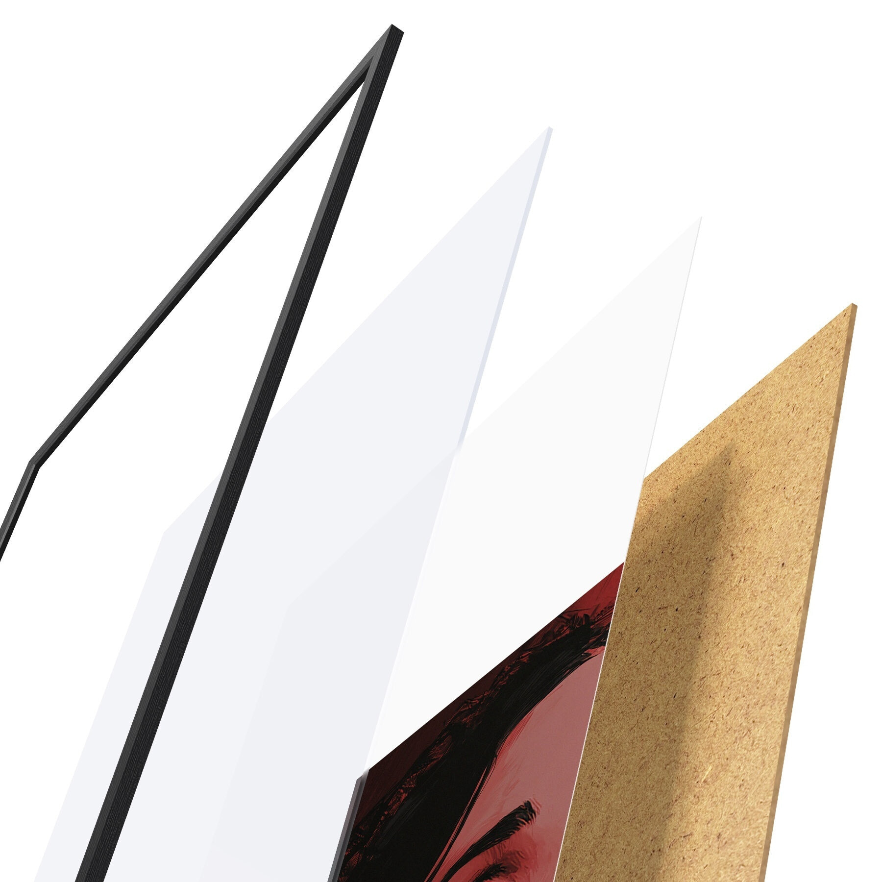 Plakat składa się z ramy, pleksi, wydrukowanego obrazu i podkładu z płyty wiórowej. Plakat można natychmiast zawiesić na ścianie dzięki uchwytom z tyłu.