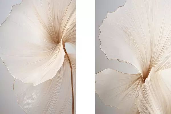 Plakat Abstrakcyjne kwiaty o cienkich, delikatnych płatkach w odcieniach bieli i beżu d00817