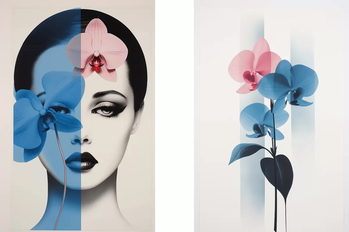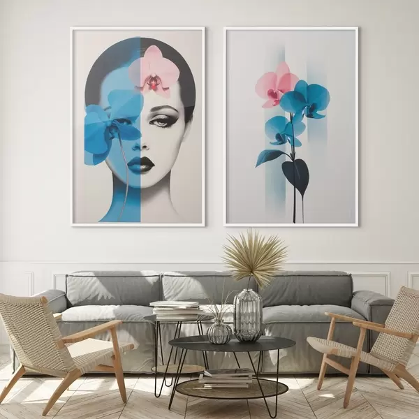 Poster Abstrakcyjny portret kobiety z orchideami Nr d00818