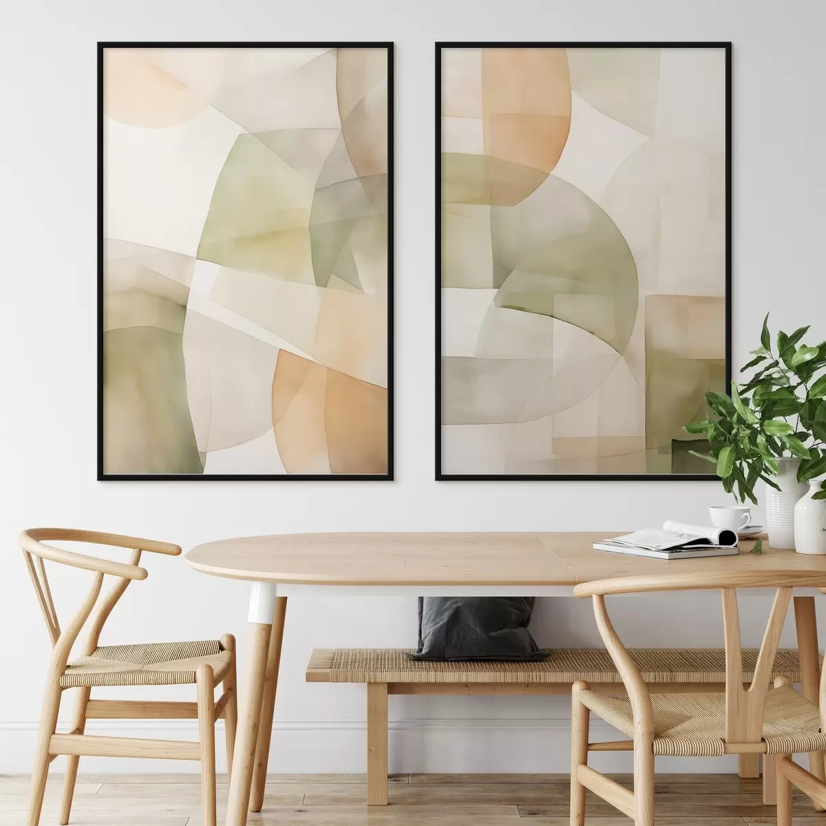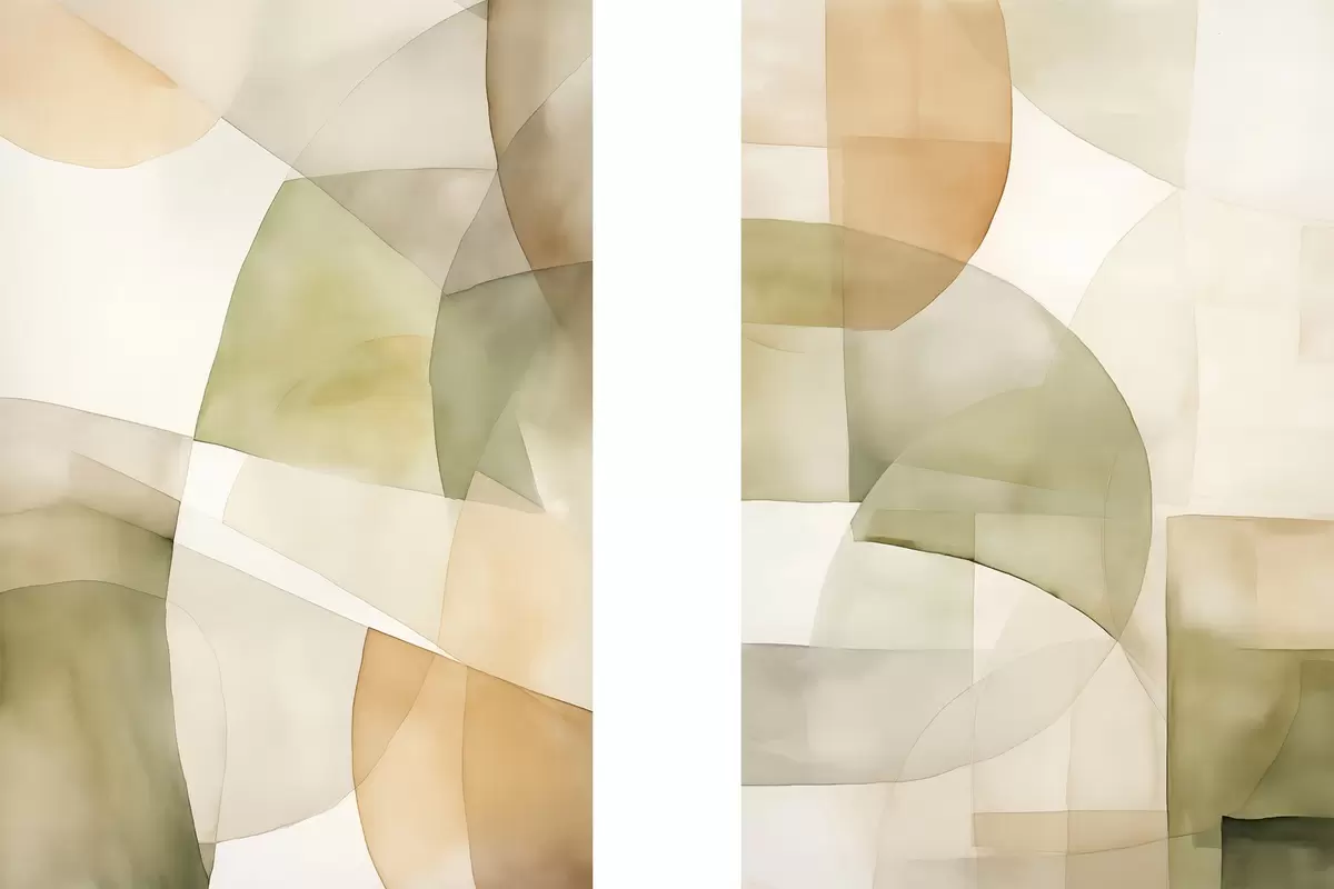 Plakat Abstrakcyjne geometryczne kształty o fakturze akwareli w odcieniach zieleni, brązu i beżu d00820
