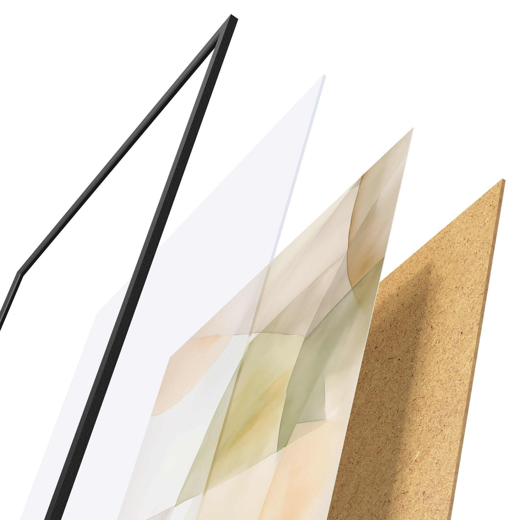 Plakat składa się z ramy, pleksi, wydrukowanego obrazu i podkładu z płyty wiórowej. Plakat można natychmiast zawiesić na ścianie dzięki uchwytom z tyłu.