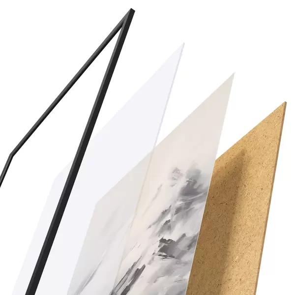 Plakat składa się z ramy, pleksi, wydrukowanego obrazu i podkładu z płyty wiórowej. Plakat można natychmiast zawiesić na ścianie dzięki uchwytom z tyłu.