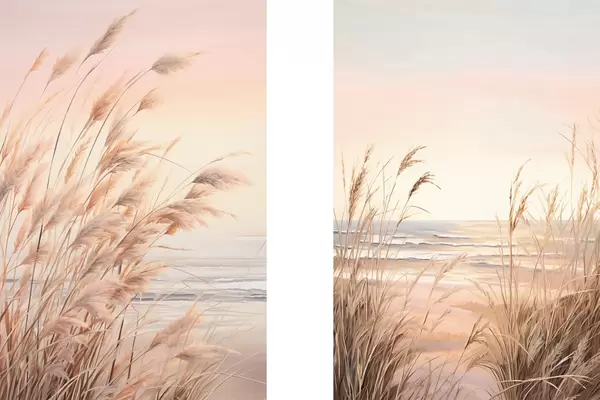 Plakat Trawa pampasowa w pastelowej pomarańczowej kolorystyce, jasnoróżowe niebo, spokojny krajobraz d00823